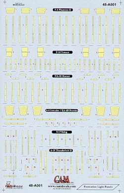 Cam Decals - 1/48 Formation light stripes and blocks for McDonnell F-4B/F-4C/F-4D/F-4F/F-4E/F-4J Phantoms, Grumman F-14A/F-14B Tomcats, McDonnell-Douglas F/A-18A Hornets, A-6 Intruder/EA-6B Prowler, Lockheed S-3A Viking, Fairchild A-10A/A-10B Thunderbolt