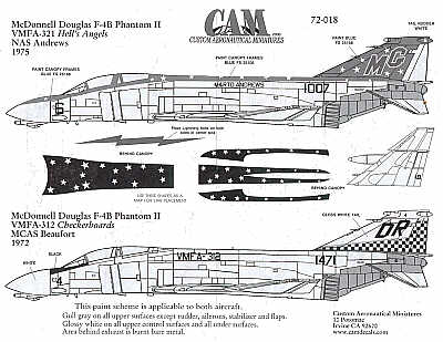 Cam Decals - 1/72 McDonnell F-4B Phantom (2) 151007 MG/6 VMFA-321 Hell's Angels Nas Andrews 1975, 151471 DR/4 VMFA-312 Checkerboards Mcas Bristol Beaufort