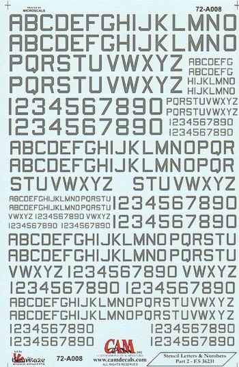 Cam Decals - 1/72 Letters and Numbers FS35231 4 sizes Part 2