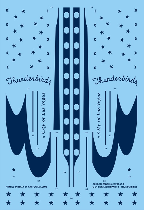 Markings for the C-54 Skymaster aircraft flown to support the USAF Thunderbirds aerobatic team. Designed for the Revell kit.
