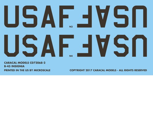This new decal sheet provides accurate and complete markings for the recent Valom kit of the B-45 Tornado, the first jet bomber of USAF. Our decals correct the many accuracy issues in the kit sheet and provide options for three squadrons attached to the 47th BW based at the UK during the 1950s.