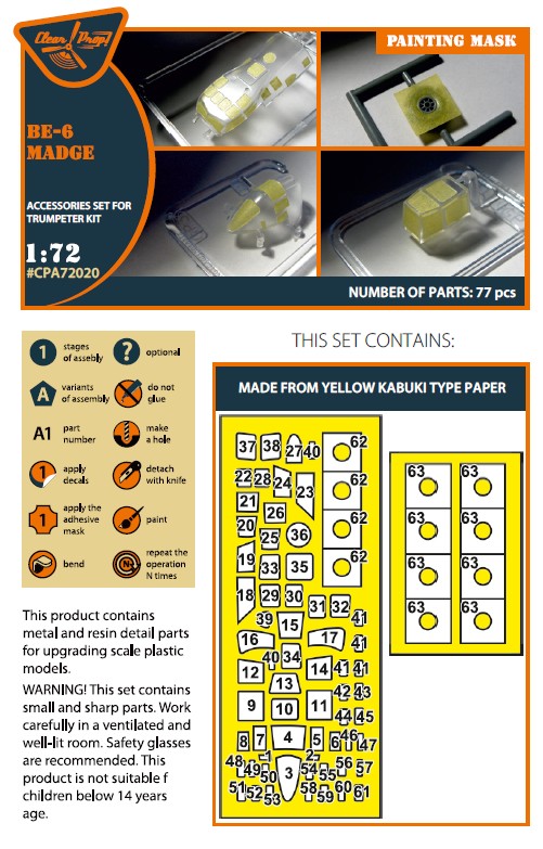 Clear Prop - 1/72 Beriev Be-6 Madge comprehensive wheels and canopy Fram paint mask made of 'yellow kabuki paper' (for Trumpeter kits)