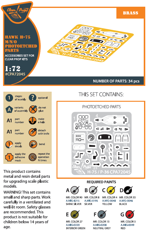 Clear Prop - 1/72 Curtiss Hawk H-75 M/N/O Pe parts (for Clear Prop kits) CP72021/CP72022