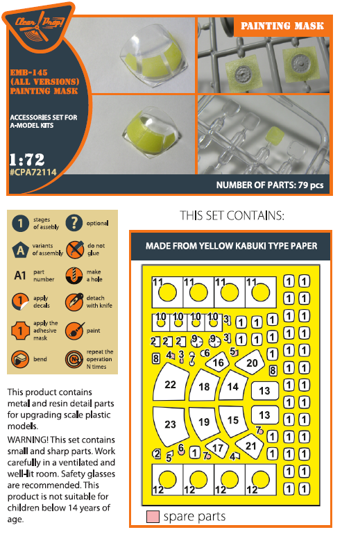 Clear Prop - 1/72 EMB-145LR painting mask on 'yellow kabuki paper' for A-Model