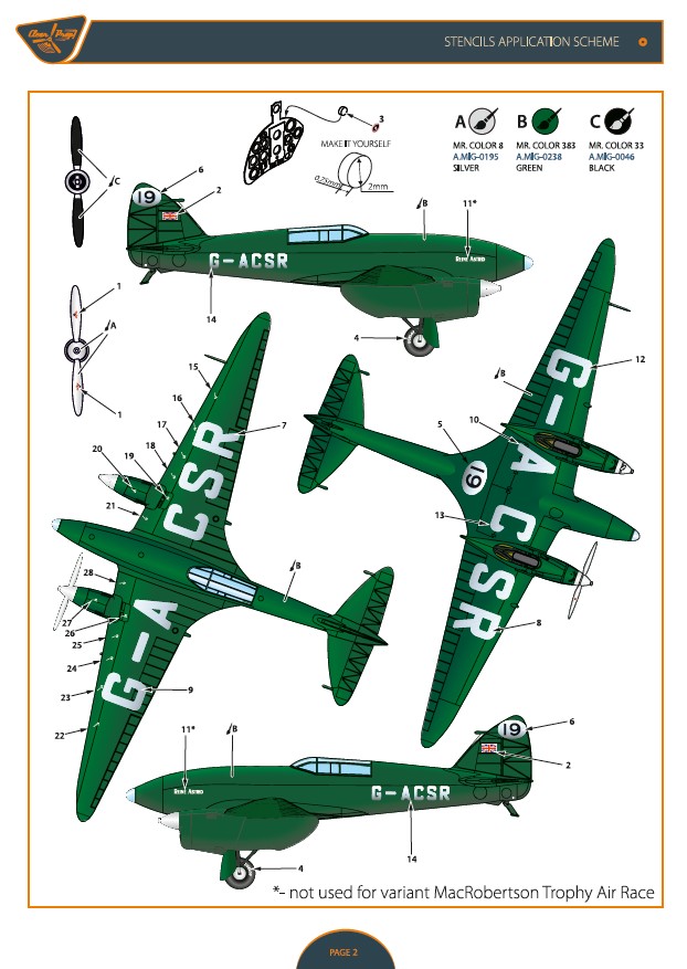 CLEAR PROP - 1/48 Decal DH.88 Comet G-ACSR for MikroMir