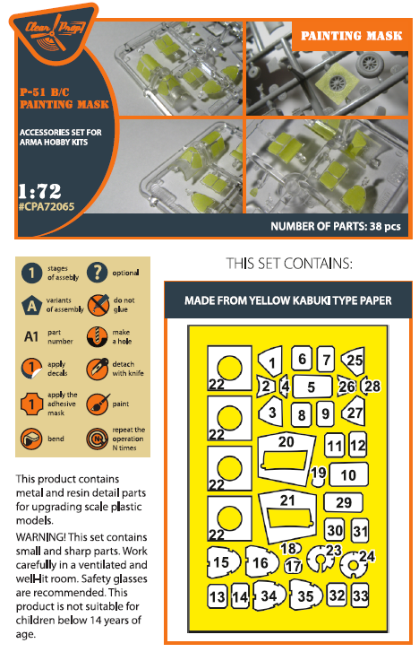 Clear Prop - 1/72 Noth-America P-51B/C Mustang painting mask on 'yellow kabuki paper' for Arma Hobby kits)