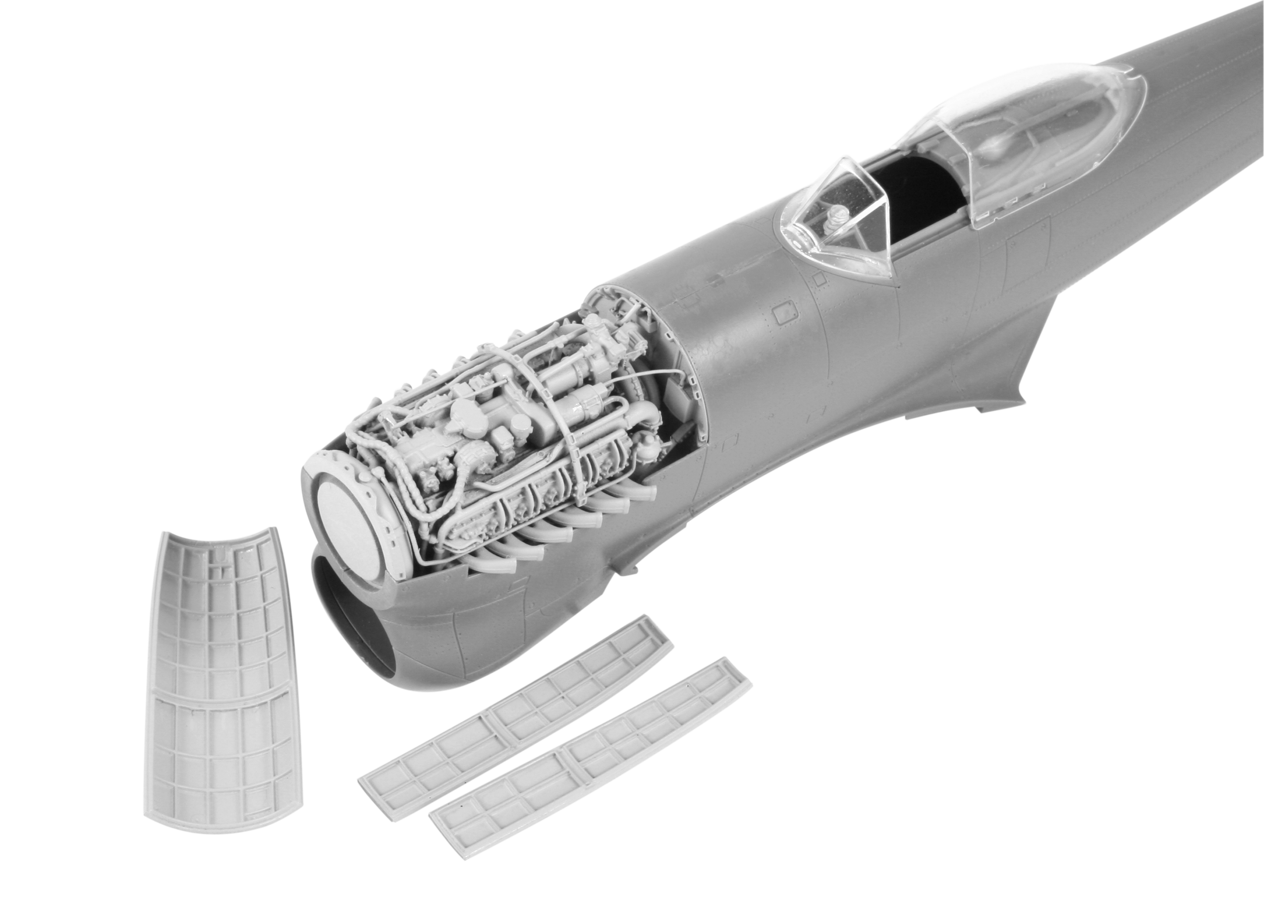 CMK - 1/48 Hawker Tempest Mk.V Napier Sabre engine (upper half) (for Eduard kits) A special set for those wishing to build the Eduard s Tempest with its engine visible and yet retain the type s distinctive feature which was the bulky chin radiator. The set offers superbly detailed upper half replica of the Napier Sabre power plant designed using 3D technology and its master parts produced on a 3D printer. The set contains also the engine bulkheads and cowling panels.