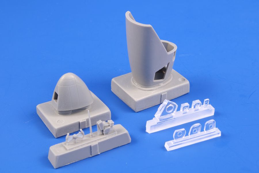 - contains resin parts, clear resin camera windows and a sheet of decals