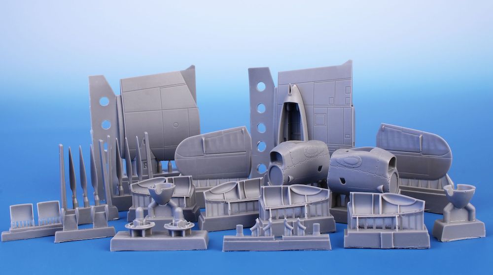 CMK - 1/72 Bristol Beaufighter Mk.II Early Type Conversion set (for Airfix kits) The Bristol Beaufighter twin-engine fighter of all versions, save one, was fitted with Hercules radial power plants. The only version which was not is the Mk.II as it was fitted with R&R Merlins. Besides British squadrons, these aircraft flew with Polish, Czechoslovak and Australian units and pilots. Our set brings the conversion parts enabling you to turn your Beaufighter model into the early exhaust style fitted machine. The set also contains decals with markings for three Raf airframes.