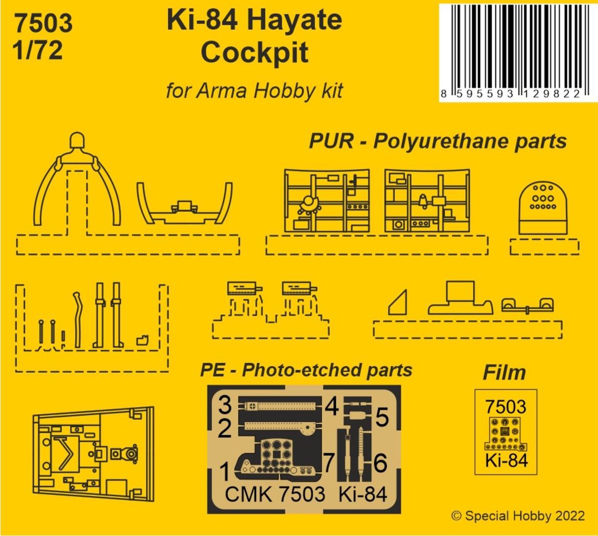 CMK - 1/72 Nakajima Ki-84 Hayate Cockpit (for Arma Hobby kits) The new Nakajima Ki-84 Hayate kit will benefit from the addition of our cockpit detail set which also comes with a fret of etched details