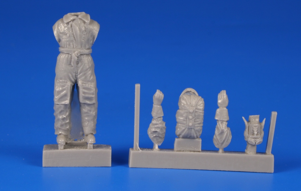 CMK - 1/48 Czechoslovak pilot (1938) with a parachute. Detailed figure of a Czechoslovak inter-war era pilot wearing an overall and a parachute in his hand. Arms, head and the chute are separately cast items. The same figure can be modelled as a Second World War Slovak pilot.