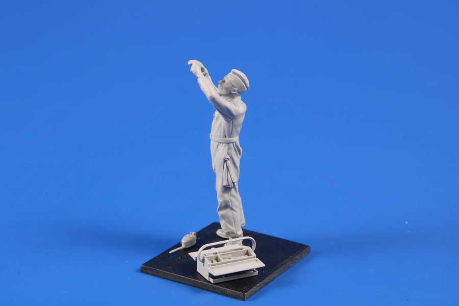 CMK - 1/48Siebel Si-204/Aero C-3 Mechanic (engine repair) Resin figure of a mechanic fixing a Siebel Si204/Aero C-3A power plant. The mechanic has an oilcan ready as well as a toolbox. The master of this figure has been sculpted based on a period photo and the resulting pose is thus very realistic and natural looking. The figure can be used as either a Luftwaffe or a Czechoslovak mechanic as the post-war Czechoslovak air force personnel were issued with ex-German gear. We are also releasing another set soon portraying an open engine bay. (for Special Hobby kits)