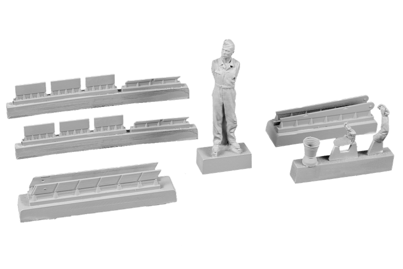 This set offers a resin figure of a ground crew member portrayed while polishing the nose glazing of a Siebel Si 204 / Aero C-3A aircraft. The airman stands on a pair of steps with a bucket put beside him. The master pattern was designed on a period photograph, hence the very natural and realistic-looking pose of the figure.