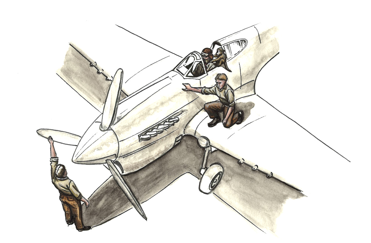 1/72 RAF Pilot Sitting in Cockpit, Monkey & 2 Mechanics
