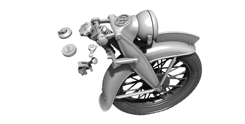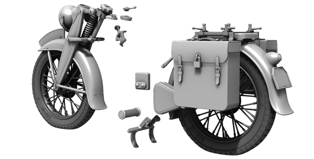 CMK - 1/35 Dkw Nz 350 Correction Set (for Tamiya kits) For the rather rusty, yet still very popular Tamiya Dkw Nz 350 kit, we have prepared this set that replaces more than a half of the kit's original parts. The reason is that the very old kit quite fails modern standards and the wheels are made one piece with the frame-which gives the bike almost toy-like impression. Try it, the results are spectacular.