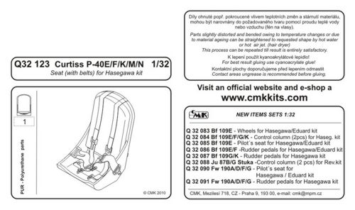 CMK - 1/32 Curtiss P-40E Kittyhawk/Warhawk seat and gunsight (for Hasegawa kits)