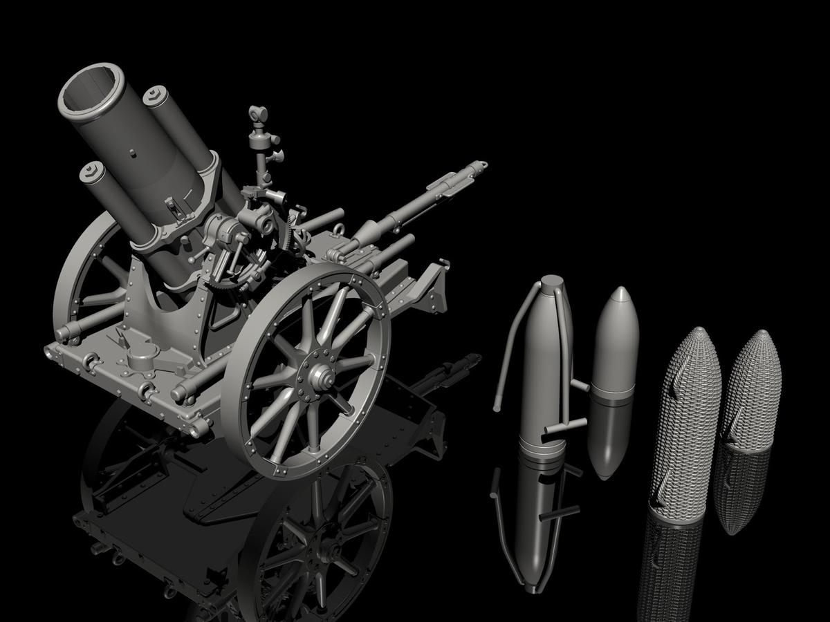 CMK - 1/35 German WWI 25cm schwerer Minenwerfer Heavy Mortar. All Resin kit . German heavy trench mortar of the Imperial German Army. It was designed before WWI by Rheinmetall and was in service until the end of the war. The mortar was transported using an attached pair of wheels and before fire, it was placed in a pit or trench protecting the mortar and its crew. Later in the war, a new model with a longer barrel was also developed and known as the n/A (neuer Art). The earlier short-barreled version was then redesignated as the a/A (or alter Art). These mortars were used during the siege of fortress Maubeuge in France or Liege and Namur in Belgium.