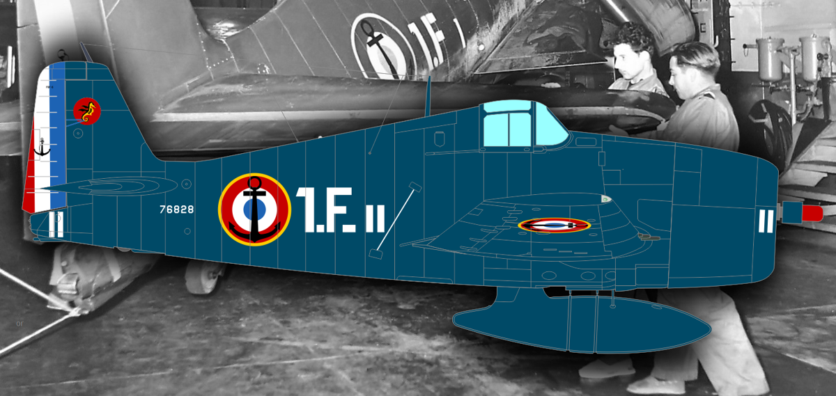 F6F-5 Hellcat, 76828 1.F.11, Flottille 1F, Aeronautique Navale, Pa ARROMANCHES, Indochine, Septembre 1951.