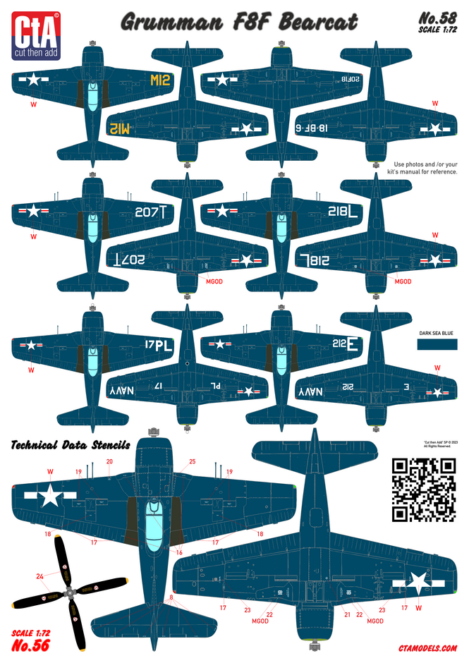 CtA Cut then Add - 1/72 Grumman F8F Bearcat All types of this aircraft, USN, 8 Markings