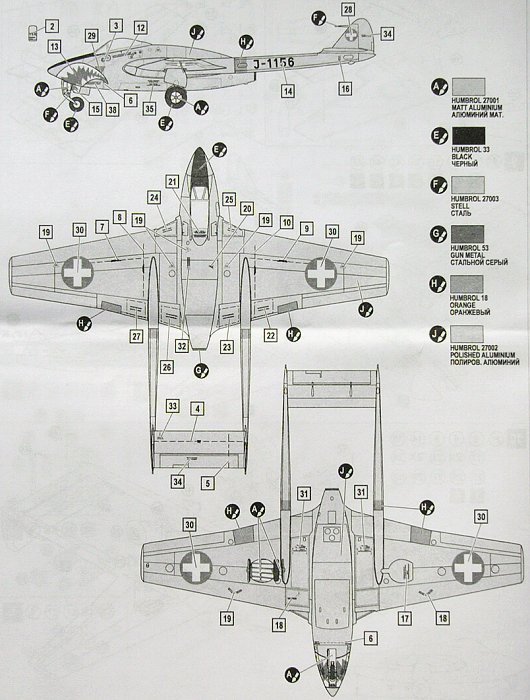 A-Model - 1/72 De Havilland DH.100 Vampire Mk.6 with pointed nose and decals for J-1156 of the Swiss Air Force .