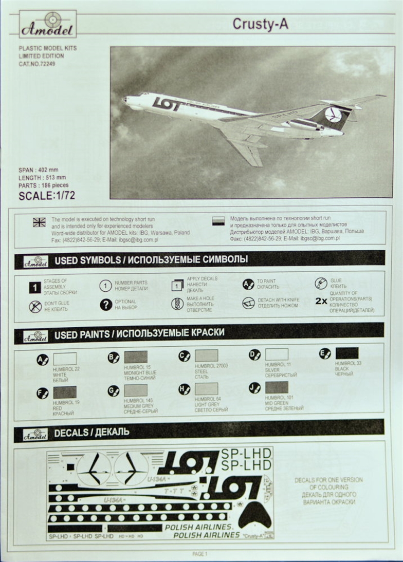 A Model - 1/72 Tupolev Tu-134A Decals LOT and Aeroflot