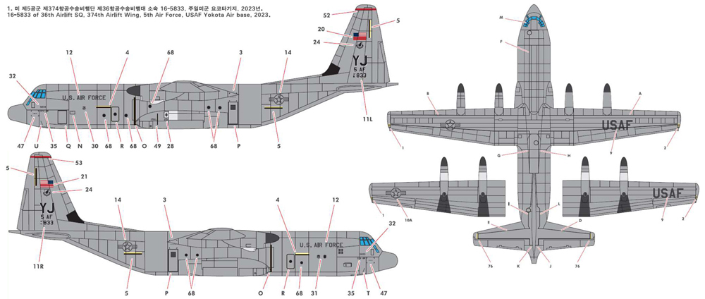 1 USAF 16-5833, 15-5817 or 16-5841, 36th Airlift SQ, 374th Airlift Wing, 5th Air Force, Yokata AFB, 2017-2023,