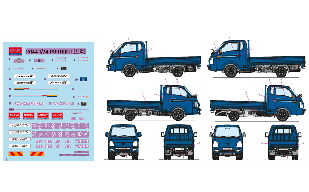MCP Multi Colour Parts. Detailed cab interior & chassis. Decals for instruments, badges & number plates. Korean packaging with instructions in English.