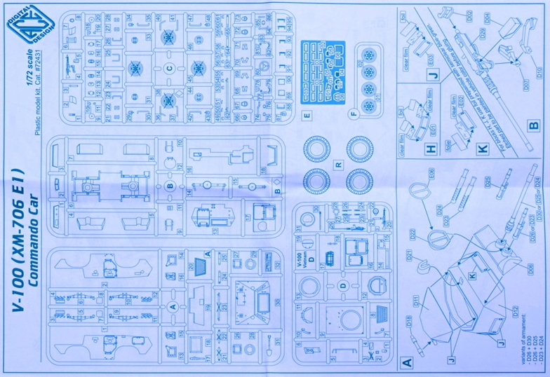 Ace - 1/72 XM-706 E1 Commando armored car. XM-706 E1 (V-100) was built by Cadillac Gage from 1964 and used widely in Vietnam for recon, convoy escort and base perimeter defence. It was initially deployed in the U.S. Army and U.S. Air Force as well as ARVN and Thai forces and later used by many other Military and Police organizations around the world. The M706 was powered by a 215 hp, V8 gasoline engine with amphibious capability, 4 wheel drive and a high ground clearance. XM706 was fitted with the T-50 turret that could be fitted with 2x M37 .30 calibre machine guns, 2x M73 7.62x51mm machine guns and also FN MAGs and M60s.