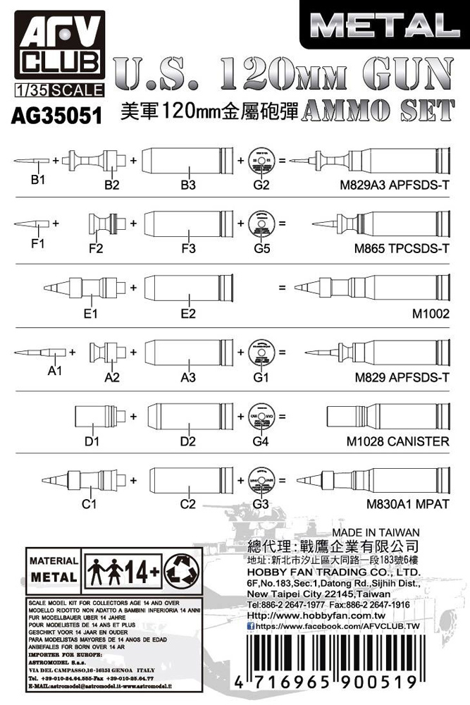 Ammo set for 1/35 scale M256 gun of US M1A1/M1A2 Abrams.