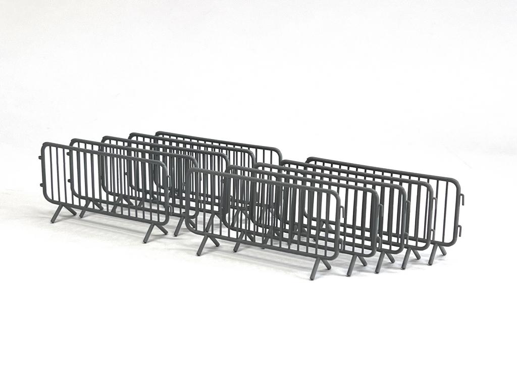 A set of ten 3D-printed barriers, which can be linked together for air show dioramas. Each section is 67.5mm long
