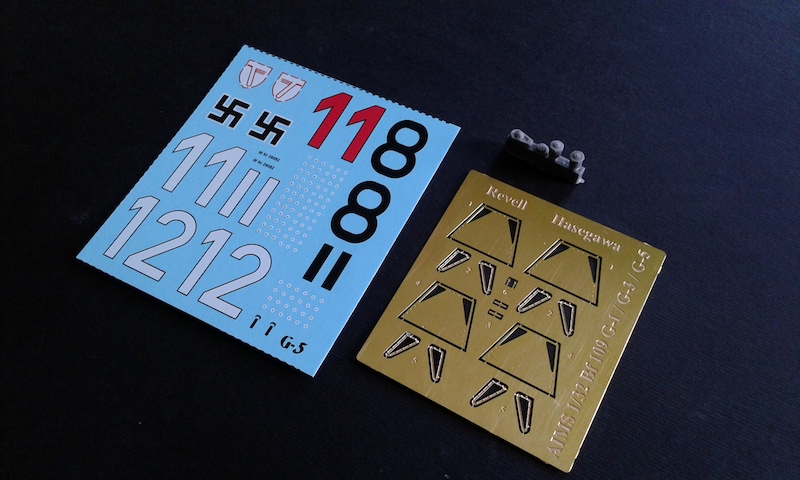 Aims - 1/32 Messerschmitt Bf-109G-5 conversion for Hasegawa and Revell kitsBf-109G-6]Bf-109G-5 of 11./JG 1, Late 1943, Herbst, Holland. Note the Rlm 04 cowl marking, white flight leader tail and FuG 16 Ze and tight spiner spirral. Machine otherwise is in the standard Rlm 74/75/76. Die Jagdfliegerverbande der Deutschen Luftwaffe 1934 bis 1945 By J Prien, G Stemmer, P Rodieke , W Bock,S Druck. Teil 10/II p.209Bf-109G-5 of 5./JG 3, Late 1943, Schiphol, Amsterdam. Note the heavy fuselage mottle normally identified with Erla built machines so you may wish to use the saw tooth upper camouflage pattern. Machine is inRLM 74/75/76. Die Jagdfliegerverbande der Deutschen Luftwaffe 1934 bis 1945 By J Prien, G Stemmer, P Rodieke , W Bock, S Druck.Teil 10/II p.266Bf-109G-5/R6 W.Nr 26028 flown by Flg. Viktor Widmaier of 7./JG 11, October 1943, Oldenburg, Germany. Note the gloss black spinner typical of Jg 11. Machine is in Rlm 74/75/76 and has his B-17 victory marking on the rudder. Die Jagdfliegerverbande der Deutschen Luftwaffe 1934 bis 1945 By J Prien,G Stemmer, P Rodieke , W Bock, S Druck. Teil 10/I p.293, Teil 10/III p.21Bf-109G-5 of 1./JG 300, late 1943, Bonn-Hangelar, Germany. Machine is in over-all Rlm 76 with black anti-exhaust staining on both wing root and wing. Ebay photoBf-109G-5 of 1./JG 300, late 1943, Bonn-Hangelar, Germany. Machine is in Rlm 76 upper and Rlm 22 lower with Rlm 74 waves over upper Rlm 76. It is not likely that this is the same aircraft as above. Ebay photo