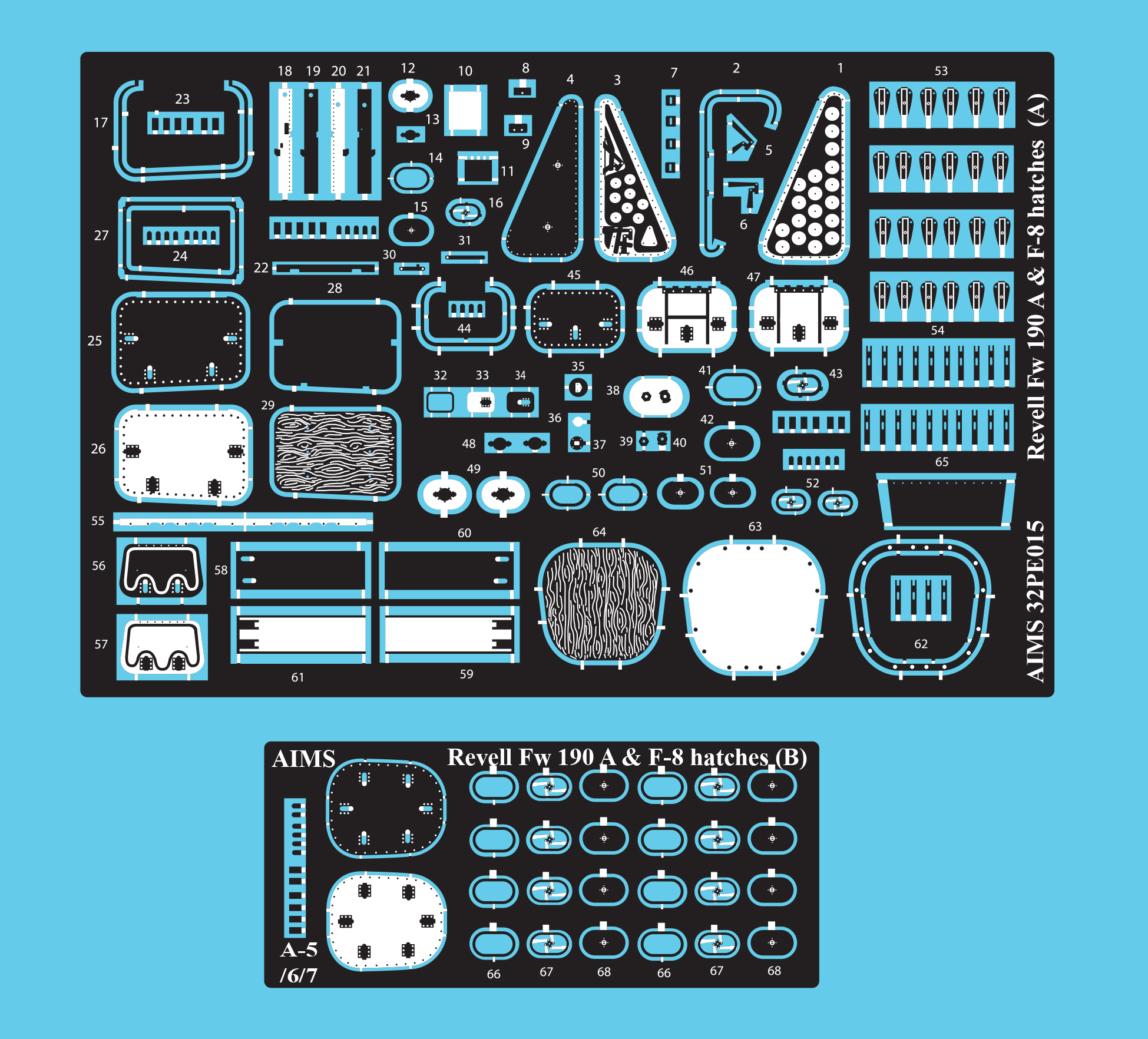 Aims - 1/32 Focke-Wulf Fw-190A-8/Fw-190F-8 hatches and latches (for Revell kits) (including Fw-190A-5/Fw-190A-6/Fw-190A-7 lower hatch for conversions)