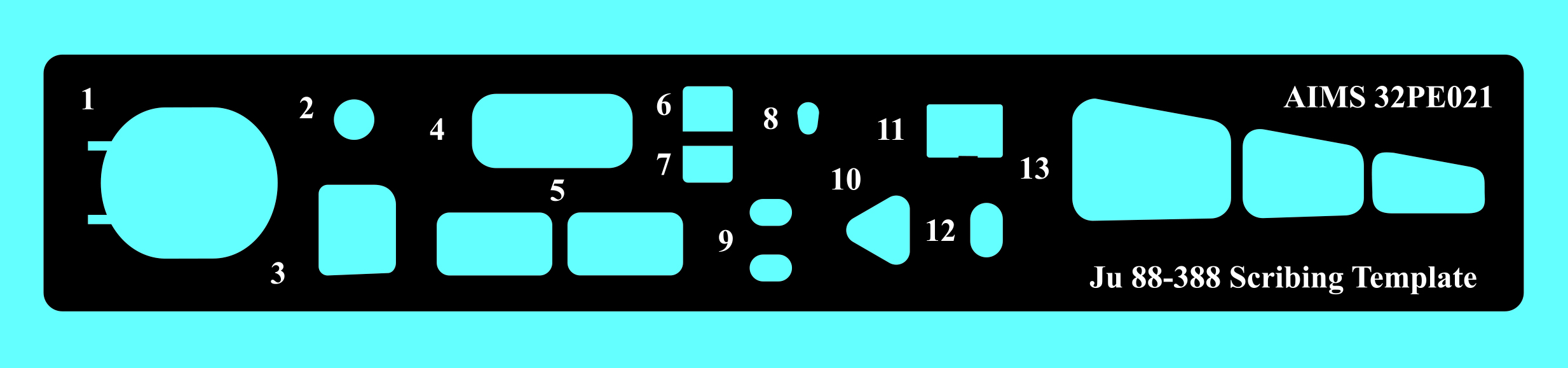 Aims - 1/32 Junkers Ju-88/Ju-188/Ju-388' panel scribing template. for Revell