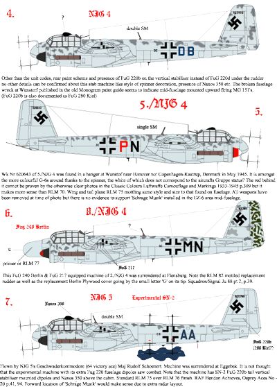 Aims - 1/48 Junkers Ju-88G. 4R+BR Walter Briegleb 7./NJG 2, 4R+RB Njg 2, D5+AH Herbert Koch 1./NJG 3, 3C+DA Njg 4, 3C+DB Njg 4, 3C+PN 5./NJG 4, 3C+MN 8./NJG 4, C9+AA Njg 5 Rudolf Schoenert, C9+HB Njg 5, C9+AC Hans Leikhard Njg 5, C9+AR 7./NJG 5 Hopf, 2Z+HM 4./NJG 6, B4+FA Njg Norwegen, B4+SA Njg Norwegen Werner Huschend, Wk Nr. 622891, Mistel S-3 Wk Nr 460065, Mistel S-3 Wk Nr 460066 plus markings for Focke-Wulf Fw-190.Plus 3 x sets of Swastikas and 3 x sets of stencils. Some Versions Will Need The Purchase Of Resin Conversion Parts Before They Can Be COMPLETED. (for Dragon kits)