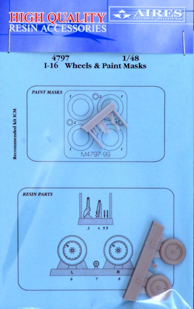 Aires - 1/48 Polikarpov I-16 wheels &Part38 paint masks (for Icm kits)