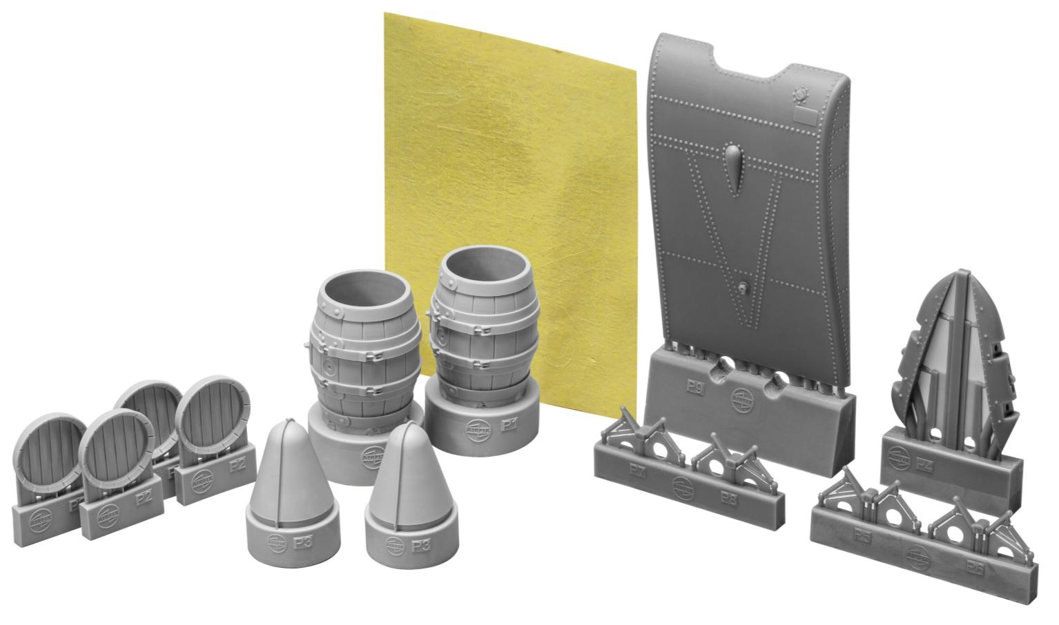 Airfix - 1/24 Supermarine Spitfire Mk.IXc Flying DrayIncluded in this special release are high detail resin parts required to truly replicate the beer carrying Spitfires 'Flying Drays'.-2 x Beer barrels, including lids barrel ends.-2 x Nose cones Information available indicates that these were probably made from the rear end of a P-51 drop tank-2 x Bomb racks-1 x Slipper tank.Also included in this release is an external canopy masking set for the clear parts and a special edition pint glass, dedicated to ML208, one of the aircraft known to have participated in these missions.