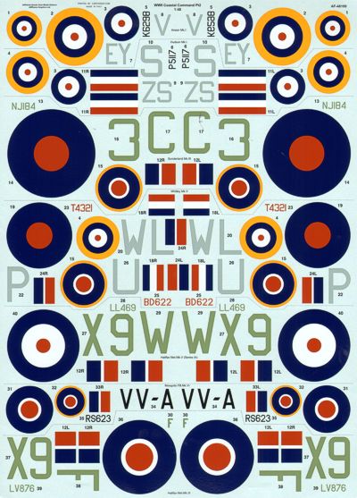 Airframe - 1/48 Coastal Command WWII Part 2 (8) Was 15.35. Now Being CLEARED!!NEARLY Half PRICE!!! Short Sunderland Mk.III NJ184 -C 423 Sqn Raf Castle Archdale 1944, de Havilland Mosquito Mk.VI RS623 VV-A 235 Sqn Raf Banff 1945, Armstrong-Whitworth Whitley Mk.V T4321 WL-P 612 Sqn Raf Wick 1941, Whitley Mk.VII BD622 WL-U 612 Sqn Raf Wick 1942, Handley-Page Halifax Met.Mk.V LL469 X9-W 517 Sqn Raf Brawdy 1945, Lockheed Hudson Mk.I PS117 ZS-S 233 Sqn Raf Leuchars 1940, Avro Anson Mk.I K6298 EY-V 233 Sqn Raf Leuchars 1939