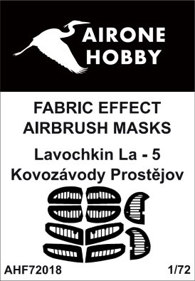 Airone Hobby - 1/72 Lavockin La-5FN fabric effect aileron and control surfaces airbrush masks (for Kovozavody Prostejov kits) these masks are made of a special adhesive vinyl foil called Oramask, which is elastic, semi-translucent and of grey-green colour. The mask can be used several times and is easy to handle before it is final pressed on to the model part surface.