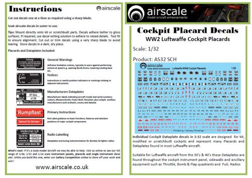Airscale - 1/32 WWII Luftwaffe/German Cockpit Placards