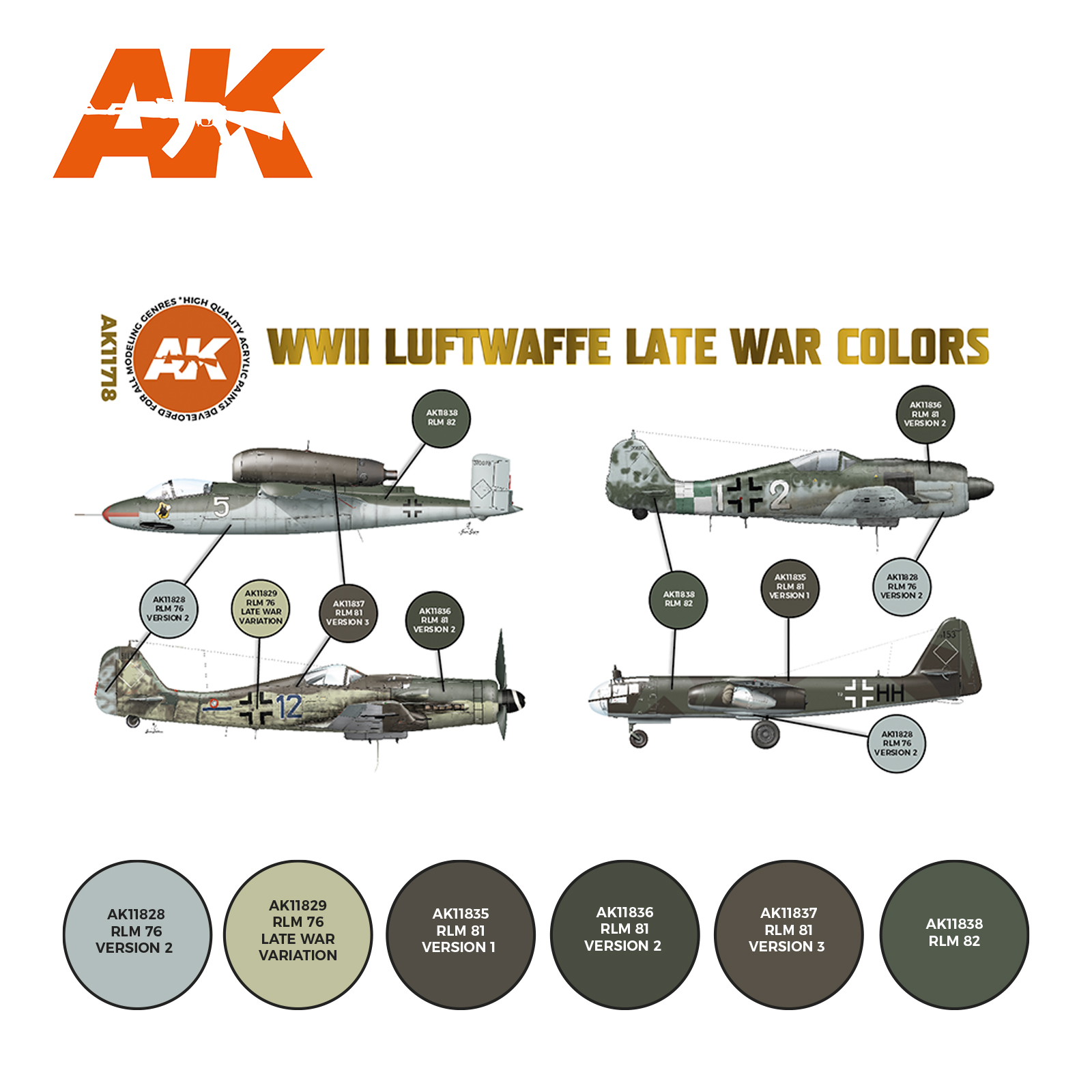 this 3rd generation acrylic paint set features the six camouflage colors that had been used for painting german aircraft manufactured from ca. Late summer of 1944 until the end of war.