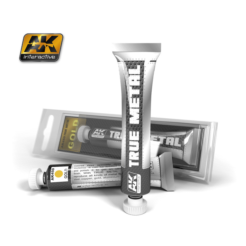 Gemälde AK-Interactive - True Metal Gold- Metallic-Lackierung aus einer Wachsbasis erstellt. Aus hochwertigen Pigmenten hergestellt, bietet es eine sehr realistische Ziel. Die Farbe kann in allen Zweigen des Modells verwendet werden und kann mit Pinsel, Finger oder einem Wattestäbchen aufgetragen werden. Einmal getrocknet, kann es zu einem Metallic-Finish poliert werden. Es wird empfohlen, als Grundierung.