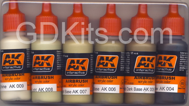 AK Interactive - German Dunkelgelb Modulation set - Dieses Set enthält 6 Acrylfarben, Dunkelgelb spezifisch für deutsche Fahrzeuge des Zweiten Weltkriegs.