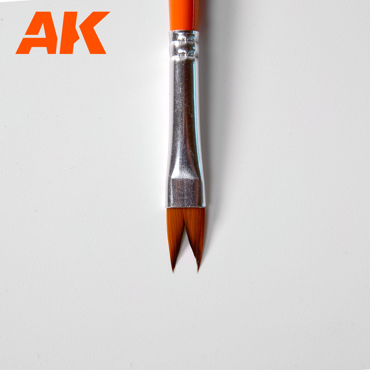 this synthetic brush in the shape of a whale’s tail allows special brushstrokes on angled areas or complicated volumes.