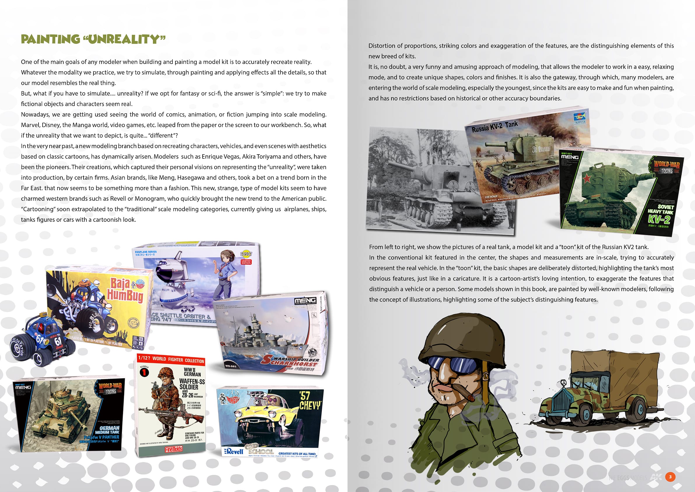 AK Interactive - This book explains in a simple but effective way with different levels of difficulty how to work with the Toon models (or egg models) which popularity is expanding worldwide, and establishing itself as a new trend on which several brands have set their sights. This is the first tutorial book focused on this kind of modelling, in which well known internationally modellers have participated. Both for beginners who want to start in the hobby and for veterans looking for new experiences, the toons represent a new point of view without historical ties and a testing ground for many modellers.