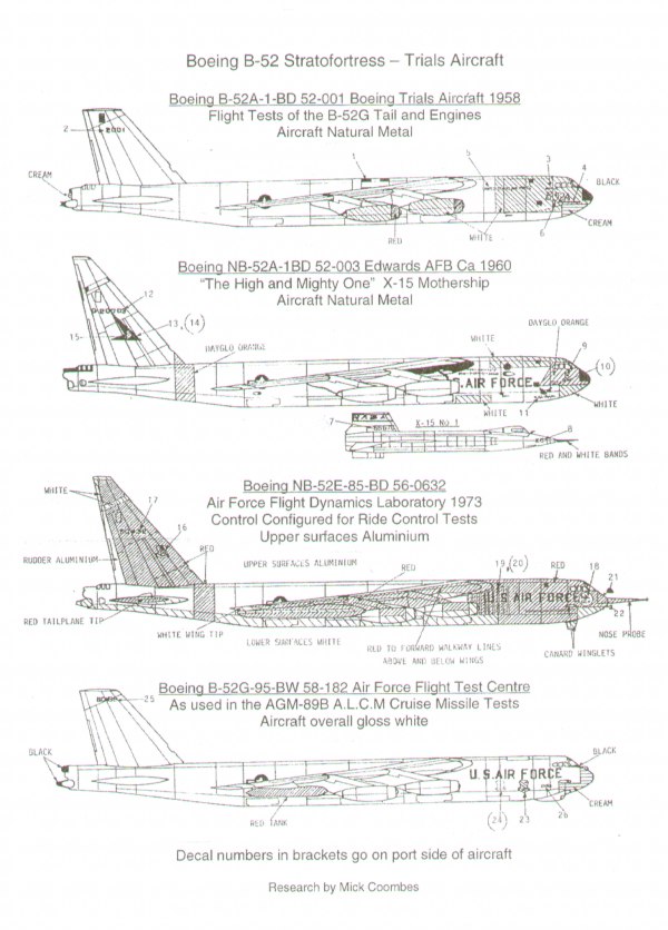 Almark - 1/72 Boeing B-52 Stratofortress Trials Aircraft 4 Boeing B-52A 52-001 used for flight test of Boeing B-52G tail and engines 1958; Boeing B-52A 52-003 `The High and Mighty One' Edwards 1960 X-15 Mothership; Boeing B-52E 60632 Flight Dynamics Lab 1975; Boeing B-52H 58-0182 Cruise Missile test, Flight Test Centre