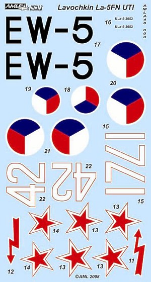 AML - 1/48 Lavochkin La-5FN Uti Decals, resin, etched for Kovozavody Prostejov and Zvezda