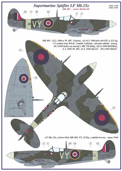 AML - 1/32 Supermarine Spitfire Mk.IXC 2 decal versions : Vy Includes decals for 2 aircraft. National Insignia and Canopy paint masks