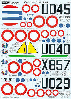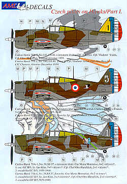 AML - 1/48 Curtiss-Hawk H-75A-1 Hawk Part 1. 4 Czech pilots in the French Air Force. No 140/1 U0 40 Vladimir Vasek; No129/5 Gc 1/5 Frantisek Chabera; No 58/1 X8 57 Otto Hanzlicek Gv II/5; No129/5 U0 29. All Battle of France 1940
