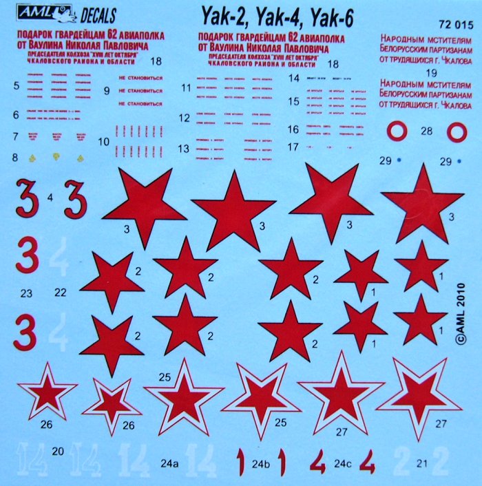 AML - 1/72 Decals for Twin engined Yak's (incl. PE set)