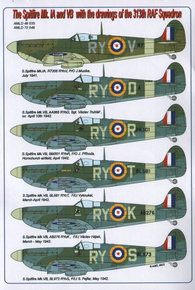 AML - 1/72 The Supermarine Spitfire Mk.Ia/Mk.1 /Mk.1 and Mk.VB with drawings of the 313th Raf Squadron